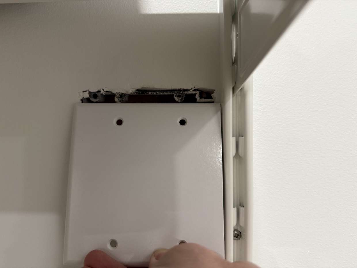 I didn't expect to have to trim this electrical plate cover to fit. Apparently I installed the closet track too close to the hole, tho that's the only place it could go because that's where the stud is.