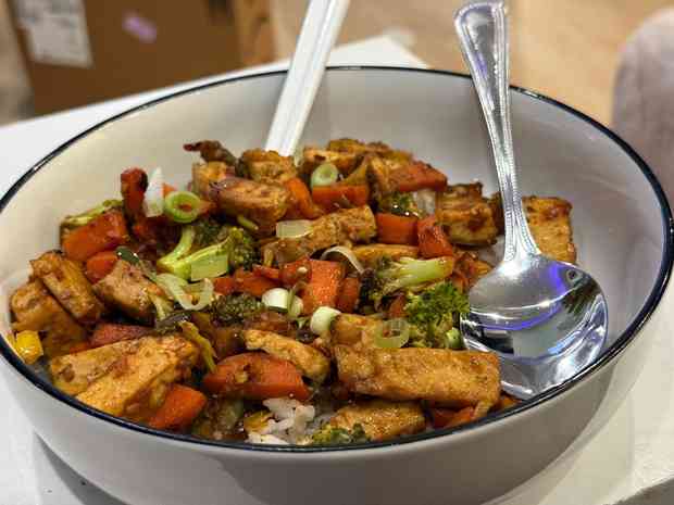 • Stir Fry Veggies with Rice and Tofu