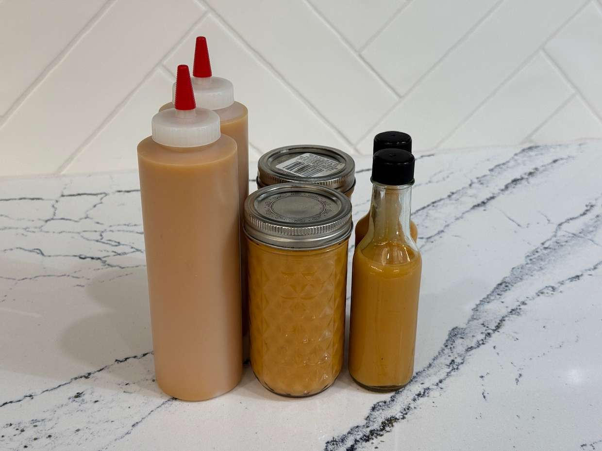 Just made the first batch of habanero hot sauce in the new kitchen! 64oz