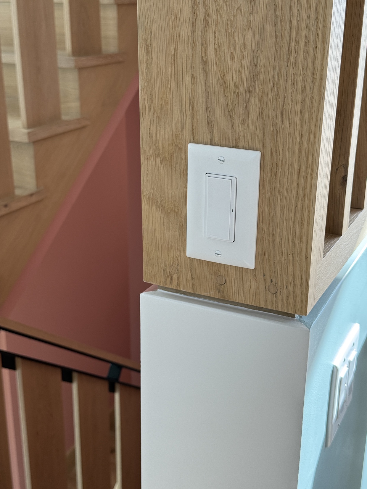 The cool thing about Lutron Pico remotes is you can add a switch anywhere, including "impossible" places like the side of this wood railing