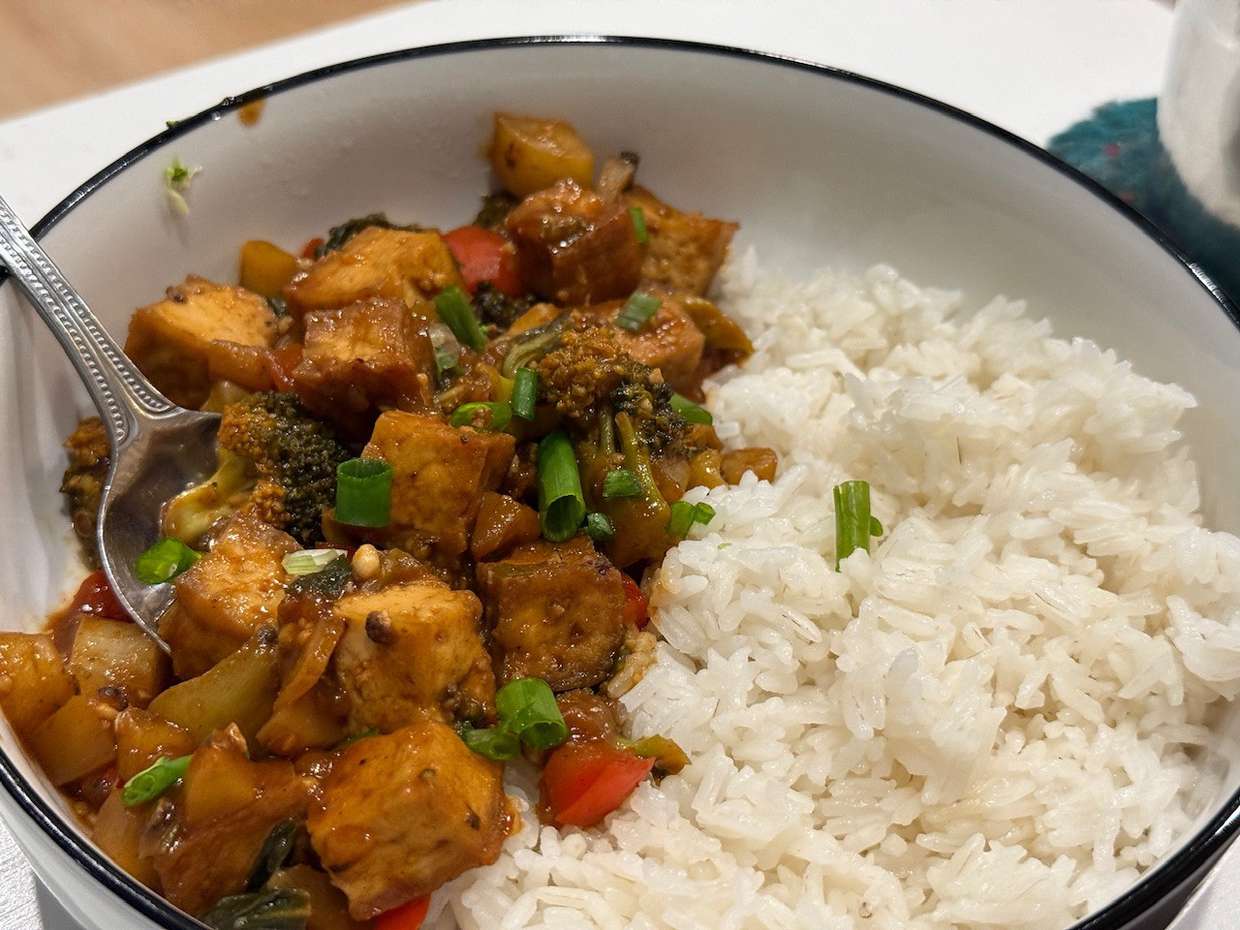 • Stir Fry Veggies with Rice and Tofu