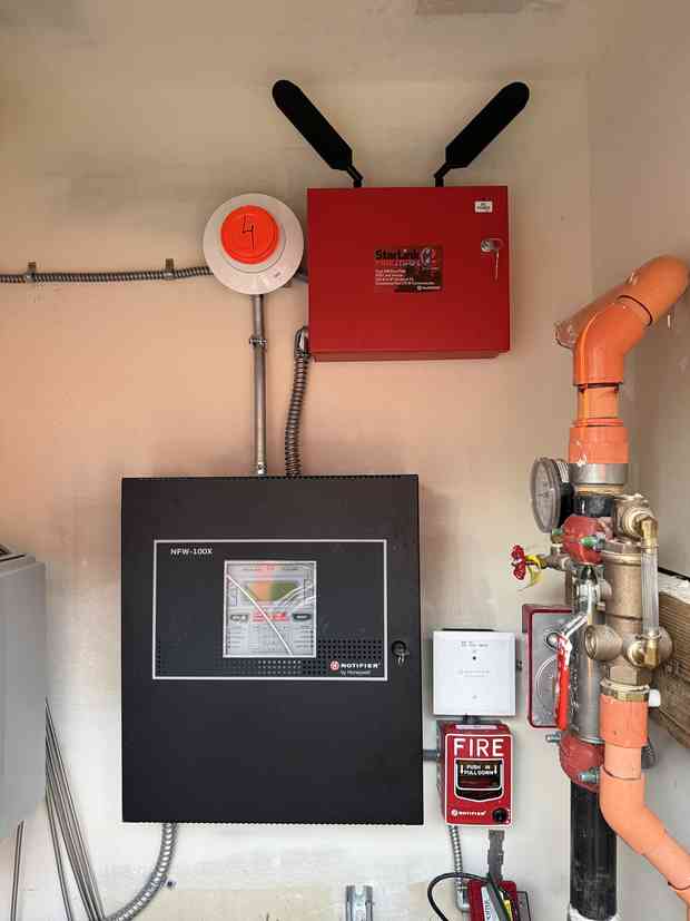 Fire sprinkler guys were here today installing the cell connection for the alarm system