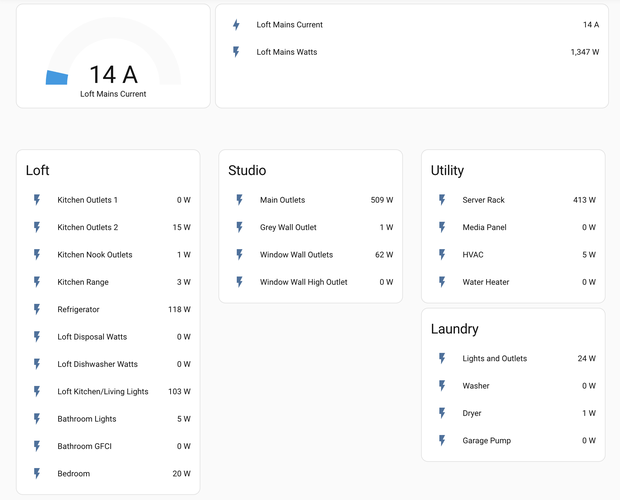 Finally finished the last two breakers, and now I have every circuit in the loft hooked up to the power monitoring system!