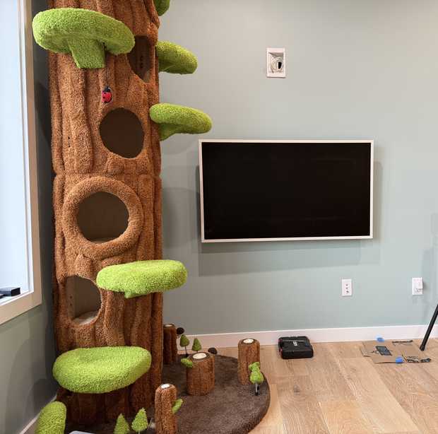I couldn't handle it anymore, and decided to take apart the cat tree and move the trunk off to the side so that it doesn't block the TV anymore