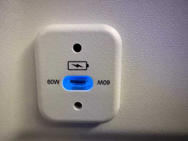 ooo new 60W USB-C charging ports on the Alaska Airlines 737-800 seats!
