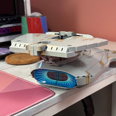 This week's LEGO build progress, got the deflector dish installed!