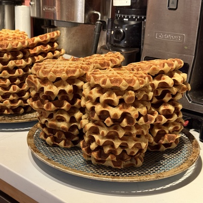 • Waffle night! Made 72 waffles! Had to start bagging them in 4-packs because I ran out of bags