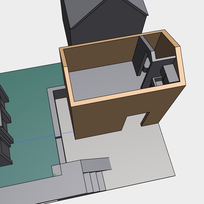 • Still working on variations of the shed. This version is an attempt to build it as a proper "shed", meaning 120 sq ft and only 15' tall. The current question is whether we can run a sprinkler pipe so we can do the door on the driveway side.