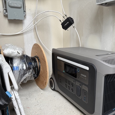 It looked like it almost wasn't going to happen there for a bit, but the crew pulled through! A very quick tree trim, an extra supply run to get thicker wire, and a quick reroute of the conduit for the main line and we're back in business.
