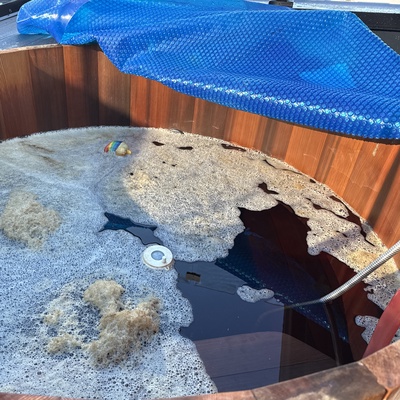 oops! let the chlorine drop too low and also there was a leak and this happened! gotta go drain the tub and start fresh, at least it's only like 300 gallons