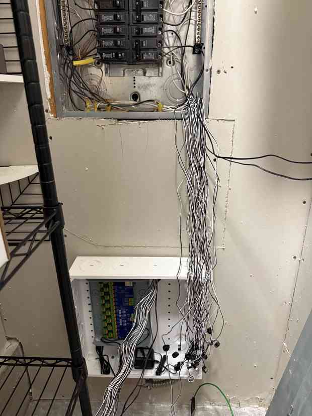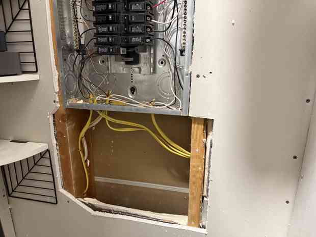 Opened up the drywall under my electrical panel to make room for the electricians to install a new low voltage box for monitoring the power usage of each circuit!