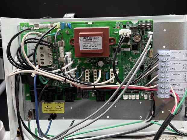 Trying to get to the bottom of the weird error the hot tub is showing. They wanted me to take a photo of the wiring, so here it is.